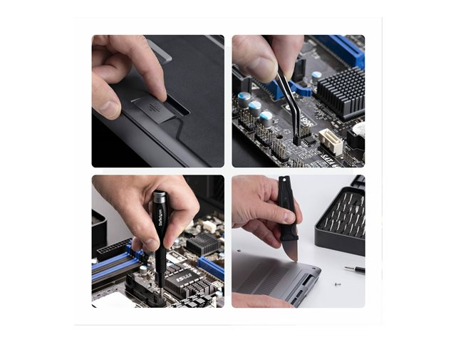 Specifikation Produktbeskrivning StarTech.com - tool kit Produkttyp Tool kit Färg Svart Produktmaterial Aluminium Dimensioner (BxDxH) 15 cm x 25 cm x 3.45 cm Vikt 503 g Tillverkarens garanti 2 års garanti -